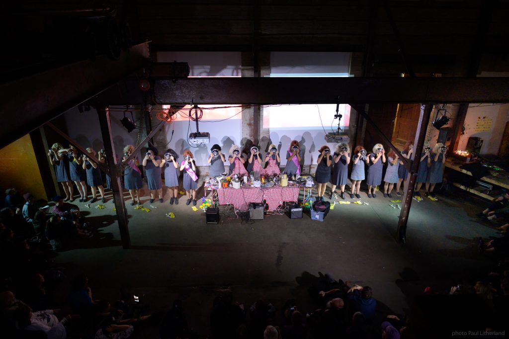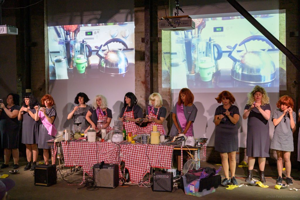 Women With Kitchen Appliances (WKKA) sont trois, quatre, ou cinq, ou six…. Interchangeables. Jetables. Et mortellement sérieuses. Elles sont un collectif de performance, un band, une cacophonie, un spectacle cabaret, une recette, une routine synchronisée pour gants en caoutchouc, une laveuse à poulet barbecue, un jingle de Noël pour de la farine de confiserie et un service de certification de cuisine.